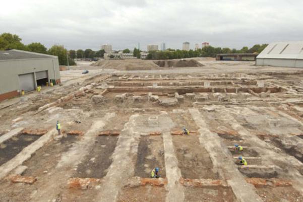 Excavations by Museum of London Archaeology on behalf of Convoy's Investments S.a.r.l continue at Convoys Wharf. Area 4, the latest to be investigated, covers over one hectare next to the River Thames in the heart of Deptford’s former Royal Dockyards. The main aims of this trench are to investigate the complex of warehouses which grew up around a storehouse originally constructed in 1513 and one of the dockyard’s shipbuilding slipways.