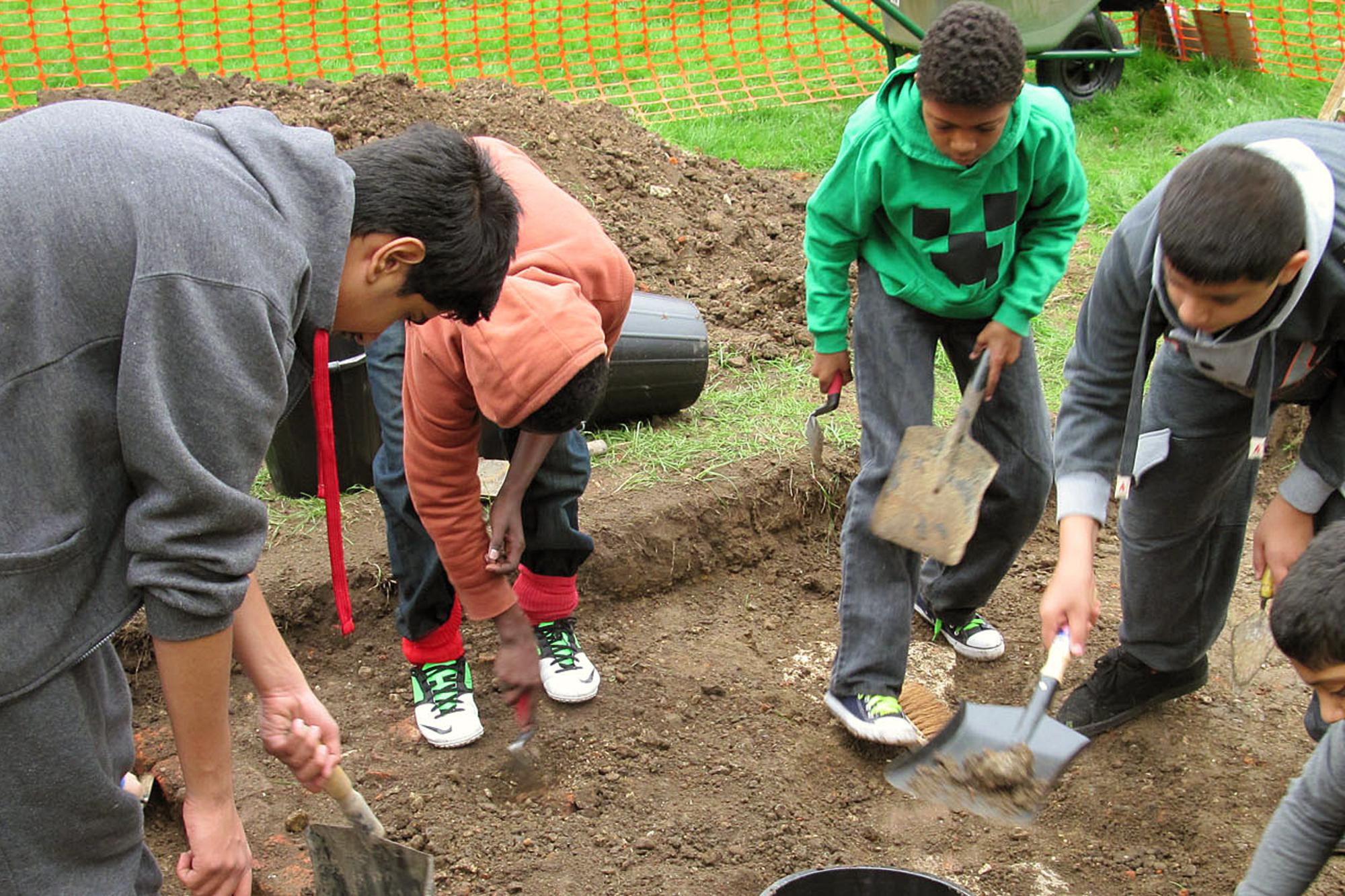 MOLA and Ealing Council invited children from two local schools to take part in an archaeology activity day at Gunnersbury Park. Sixty pupils from Acton High and Isleworth & Syon School spent the day discovering the various aspects of archaeology, culminating in a unique hands-on experience digging in a real trench.