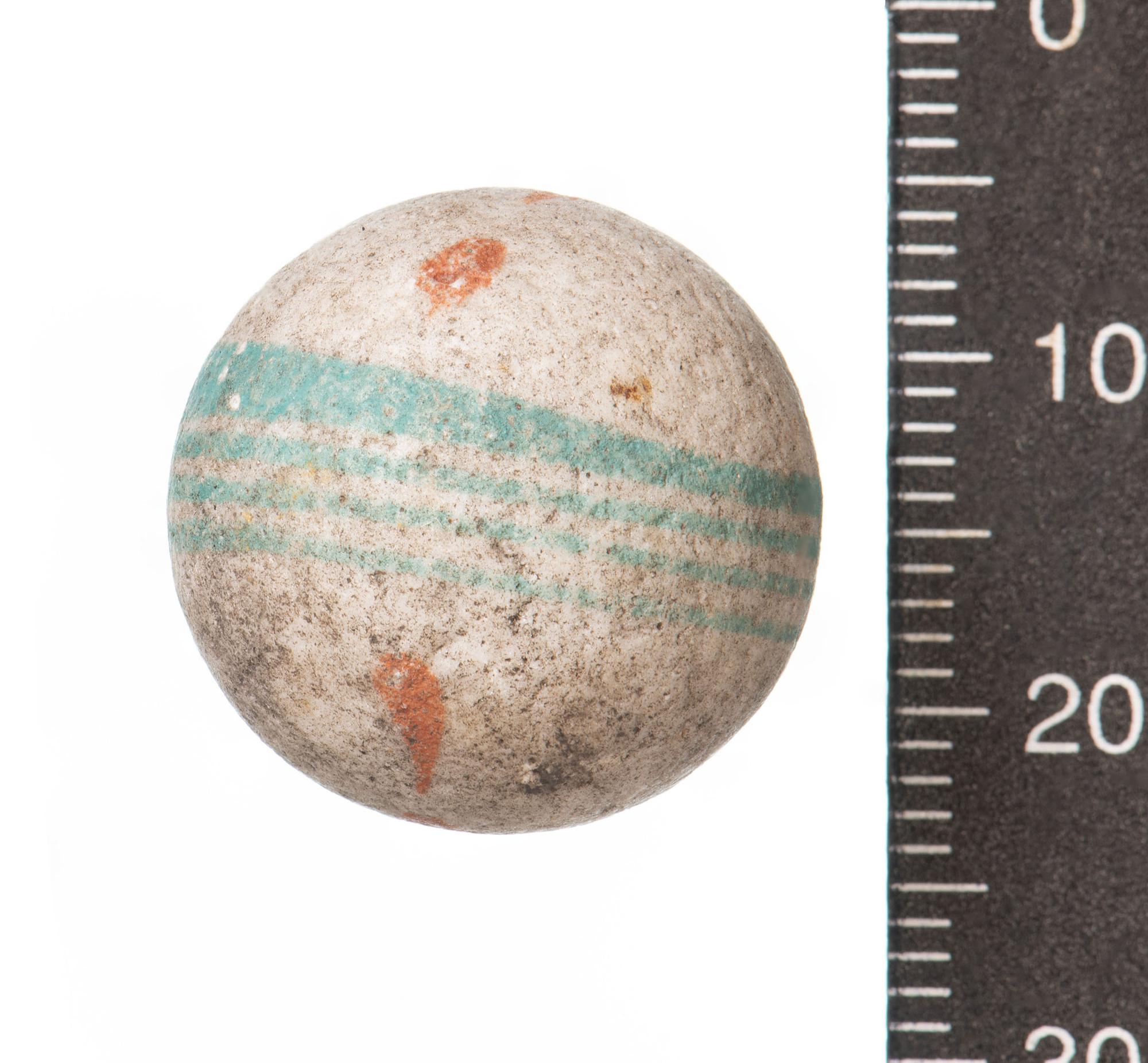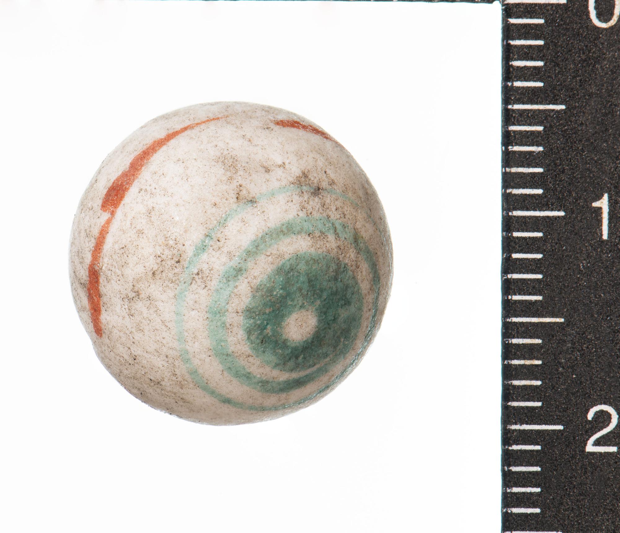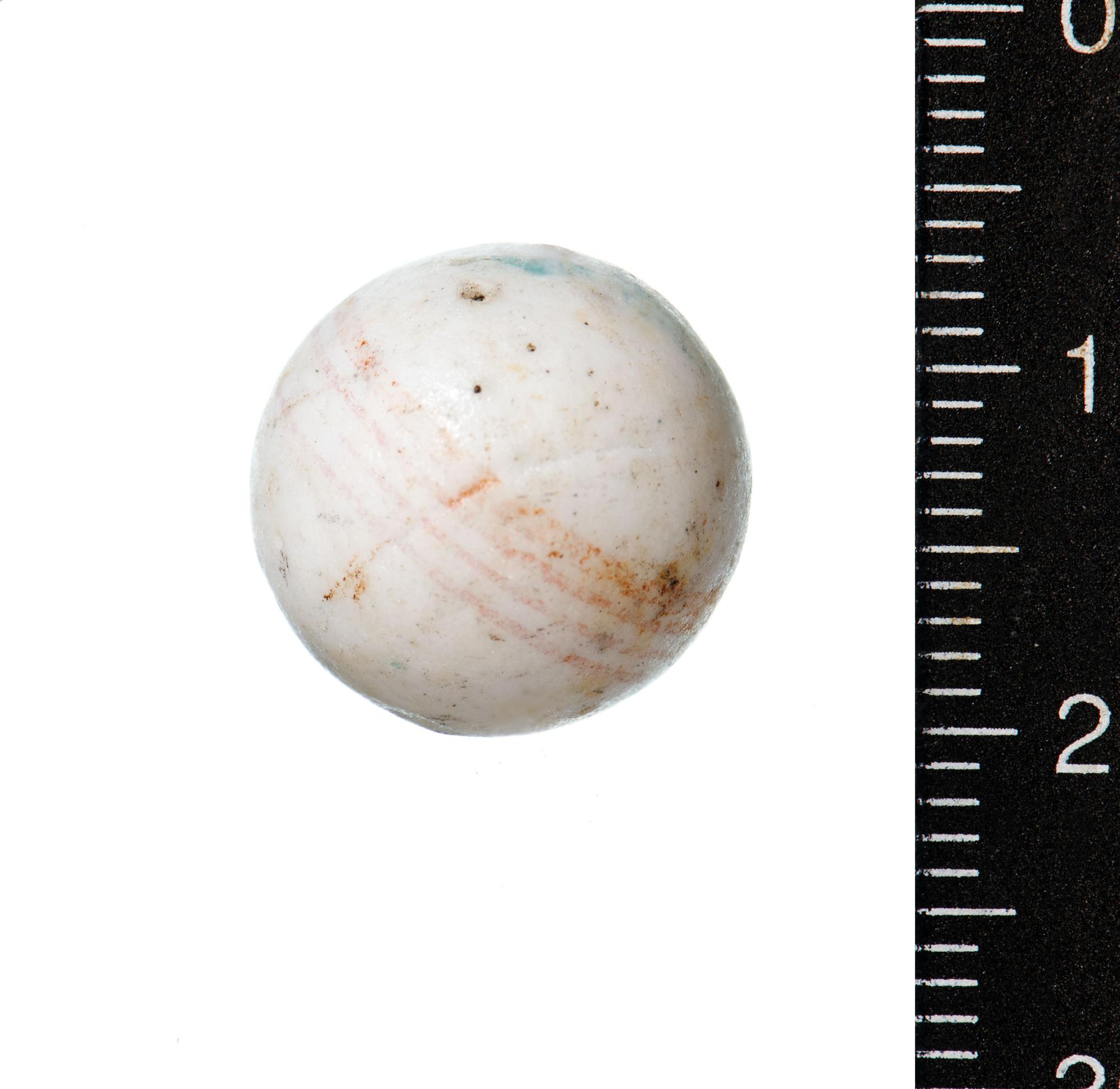 These ceramic alleys (marbles designed to look like they were made from alabaster stone) were found in a covered, brick lined drain – perhaps they were lost during a breaktime game!